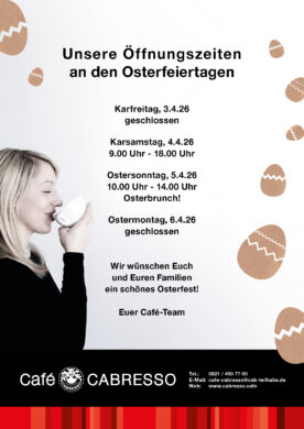 Tauche ein in die Welt der CABRESSO-Cafés – Orte der Kaffeekultur und Begegnung im Herzen von Augsburg! In unseren Cafés und der Rösterei arbeiten Menschen mit verschiedenen Stärken und Kompetenzen als inklusives Team zusammen. Sie schaffen eine entspannte Atmosphäre, die einlädt, hervorragenden Kaffee zu genießen, gut zu essen und zu verweilen.